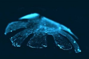 TerminatorWell, that’s one way to look at this bio-engineered jellyfish. Sure, it’s a long way from Terminators, Replicants and Cylons, but it just might constitute a step in that direction. Known as a medusoid, this jellyfish was created by growing a thin layer of rat heart muscle cells on top of a layer of elastic silicone. The end result is a creature that is a merger of living and non-living components and swims like an actual jellyfish.