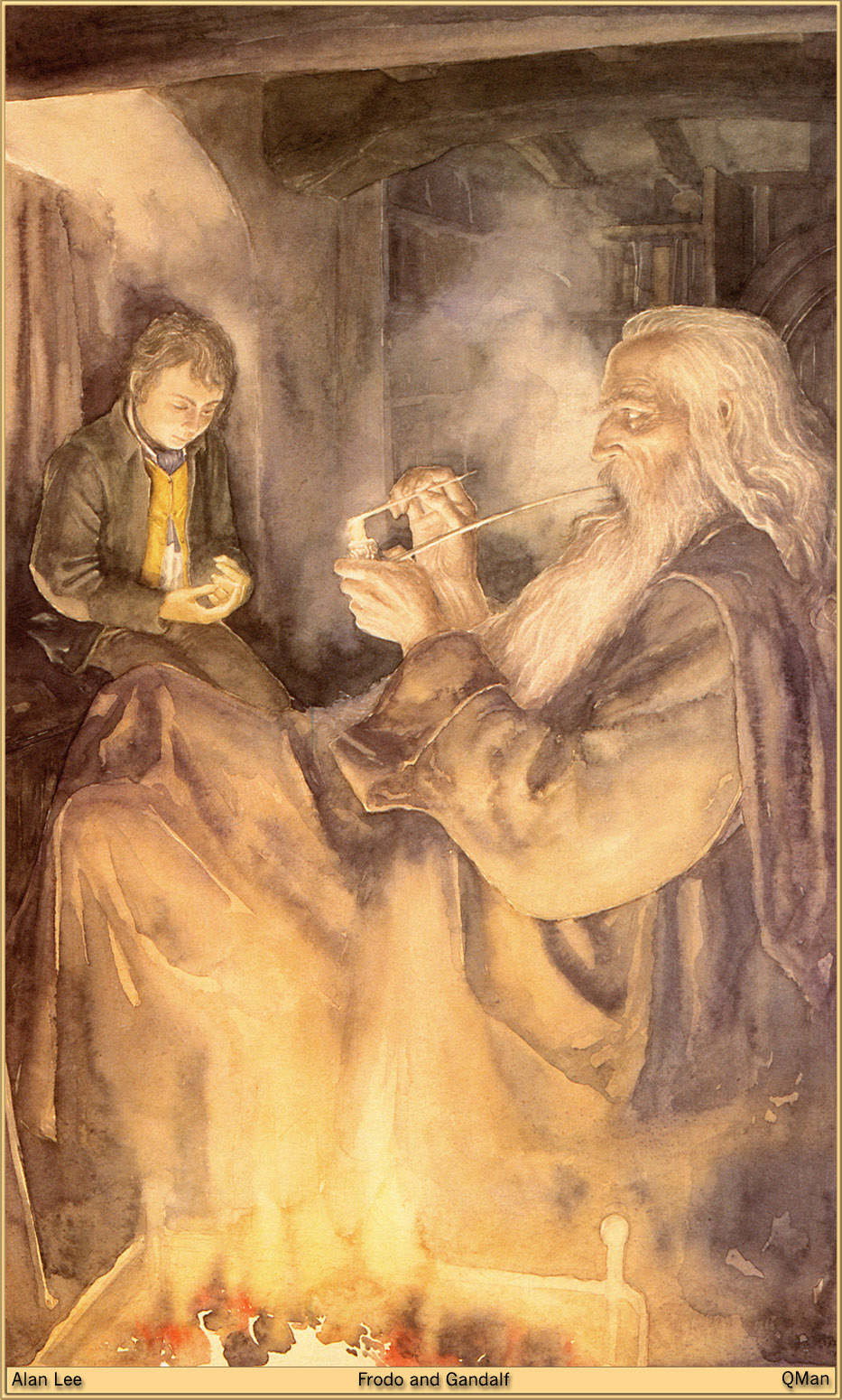 This provides some additional background on the story, where Gandalf explains to Frodo all about the “War of the Last Alliance”, how Isildur took the Ring for himself, and how it fell from his posession to be lost for ages. He also explains how, in time, Bilbo found the Ring in a cave where a forlorn creature named Gollum had been living with it for centuries. It was this Ring that bestowed Bilbo’s legendary longevity, as it did Gollum while simultaneously poisoning his mind.