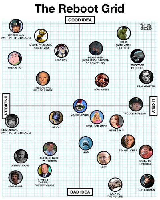 I was most pleased to see this because, not only did it make me laugh, it let me know that this trend is occupying the attention of people who work for websites far more respectable than mine! And as you can see, they aren’t too crazy about the nature of recent reboots either. Whereas there are plenty of good reasons to do one, and plenty of worthy candidates, it does seem like Hollywood is still letting the lowest common denominator inform their decision making.