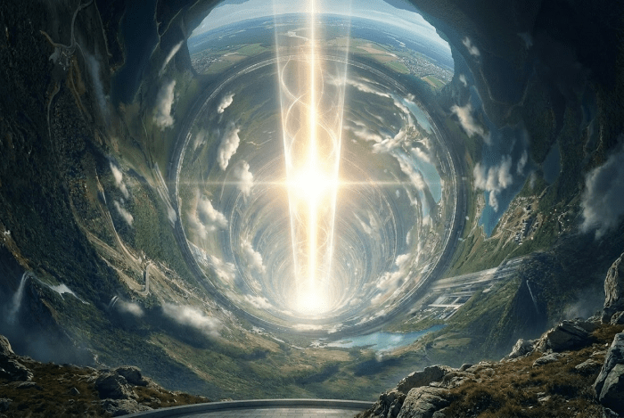 The inside of the Habitation Section simulates every climate on Earth, with landmasses that simulate entire continents separated by oceans and waterways. The entire volume is heated and lit by the “Sunband,” a flowing beam of photons designed to provide enough heat and light to maintain the climate in different regions. From one end of the Section towards the “equator,” the climates are arranged as Tundra, Boreal Forest, Grassland, Tropical, Desert. From the equator to the other end of the Section, the same climates are arranged in reverse.