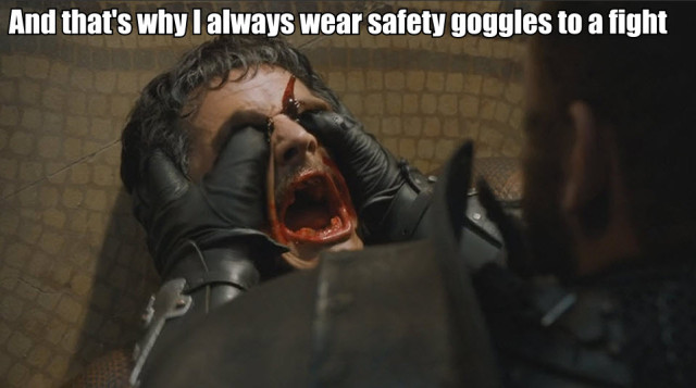 Wait, so they didn’t want to show Catelyn as a zombie and because they were too busy with other things? Well okay, except that she’s NOT a walking corpse, she’s a reanimated, living being, who just happens to look a bit the worse for wear. As for the latter explanation, that they were busy, this sort of makes sense since they chose to change things in the final episode where Brienne and the Hound fight it out. But as I said, that never happened in the books and it also served little purpose.