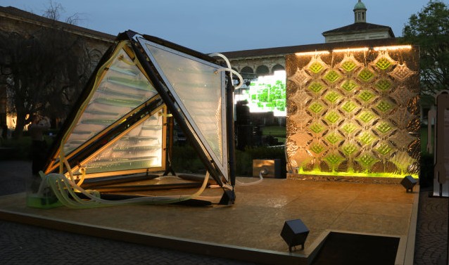 Each system is custom designed for a specific wall, since it’s important to have the right conditions for the algae to thrive. Too little sun isn’t good for growth, but too much sun will cook the organisms. Griffa is working on his first large-scale application now, which will be installed in the Future Food District curated by Carlo Ratti Associates at Expo 2015 in Milan. And it won’t be the first project to incorporate algae-filled walls. A new building in Germany is entirely powered by algae growing outside.