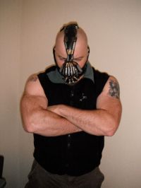 And speaking of shaving my head, that calls to mind another possible costume! Ever since TDKR came out, I’ve been dying to do a rendition of Bane. The Joker was a little labor intensive and really didn’t seem doable back when TDK came out. But this year, I think I just might be able to find everything I need to pull of this latest, brawny villain! I already got a line on where I could get a mask just like his, and for cheap too! The rest of the costume is pretty simple and can be slapped together from a vest, a tank and some work pants easily enough.
