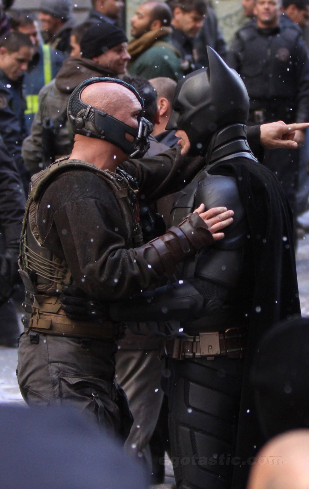I for one look forward to seeing this movie, and not letting one bad review throw off my opinion of it or get me all worked up. Hell, even the last movie had its faults, but that didn’t take away from it being an awesome and memorable movie, especially where Heath’s portrayal was concerned. And if behind-the-scenes photos of Batman and Bane have taught us anything, it’s that even mortal enemies can kiss and make up! Seriously, check out these photos. Tell me that aint the perfect example of a heartwarming bromance!