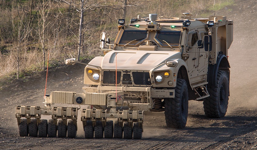 One such developer is U.S. defense contractor Oshkosh Defense, which recently unveiled its new M-ATV, an armored vehicle specially designed to resist blasts from IEDs and mines. This specialized, high-tech troop transport detects explosives using special ground penetrating radar and a 12-wheeled mineroller which attaches to the front. But now, the company is going a step further.