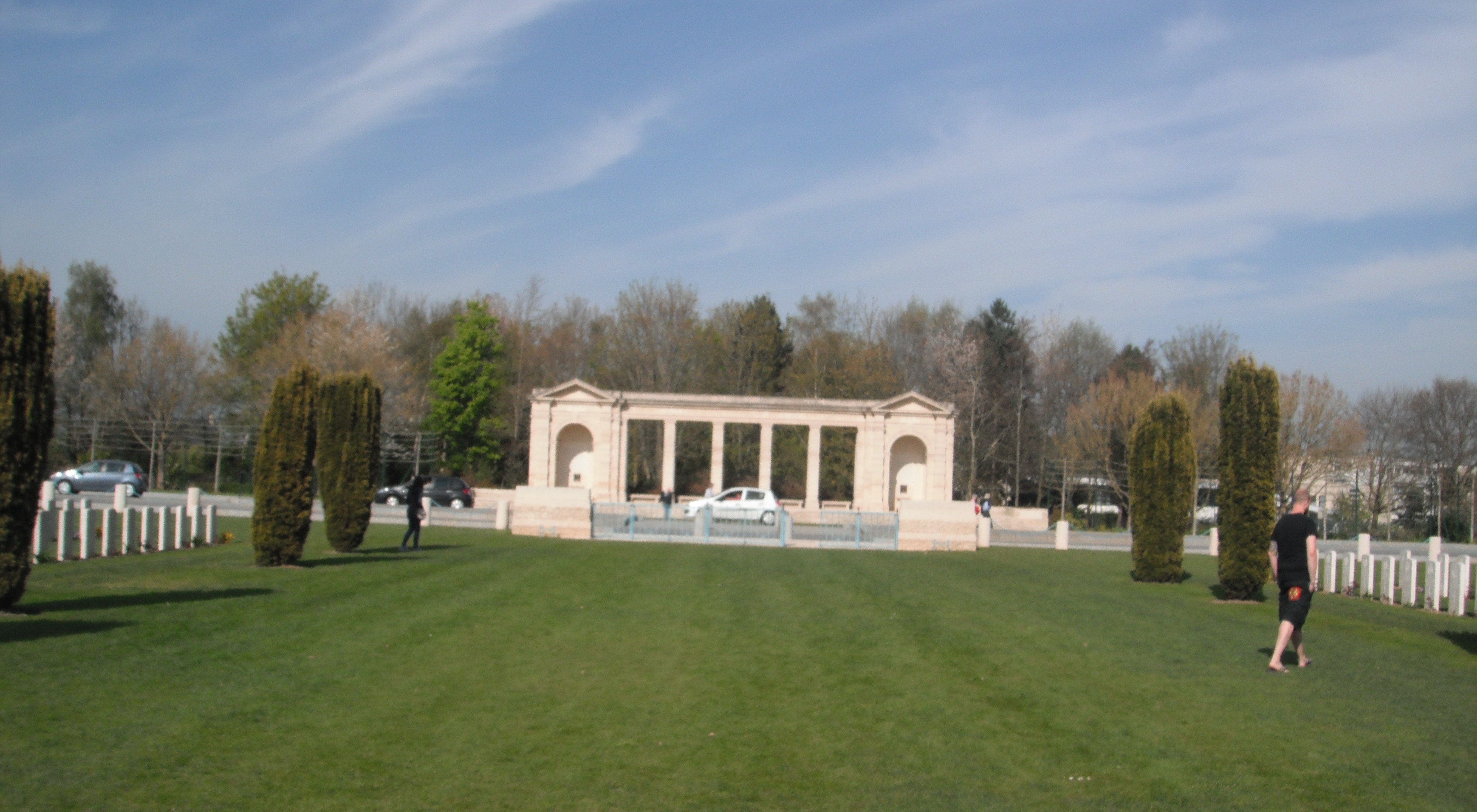 And then, it was off to Ranville, which proved to a small town – though compared to Grangues, it was a minor megapolis. Once there, we grabbed some lunch from a local bakery, which consisted of water and/or Orangina and some sticks of bread with cheese and ham baked in. We downed these at the local park, and entered the Ranville War Cemetery, and found Wilmot Petitt’s grave (pictured above). As it states on his stone, he was awarded the Order of the British Empire and the Distinguished Flying Cross for his actions.