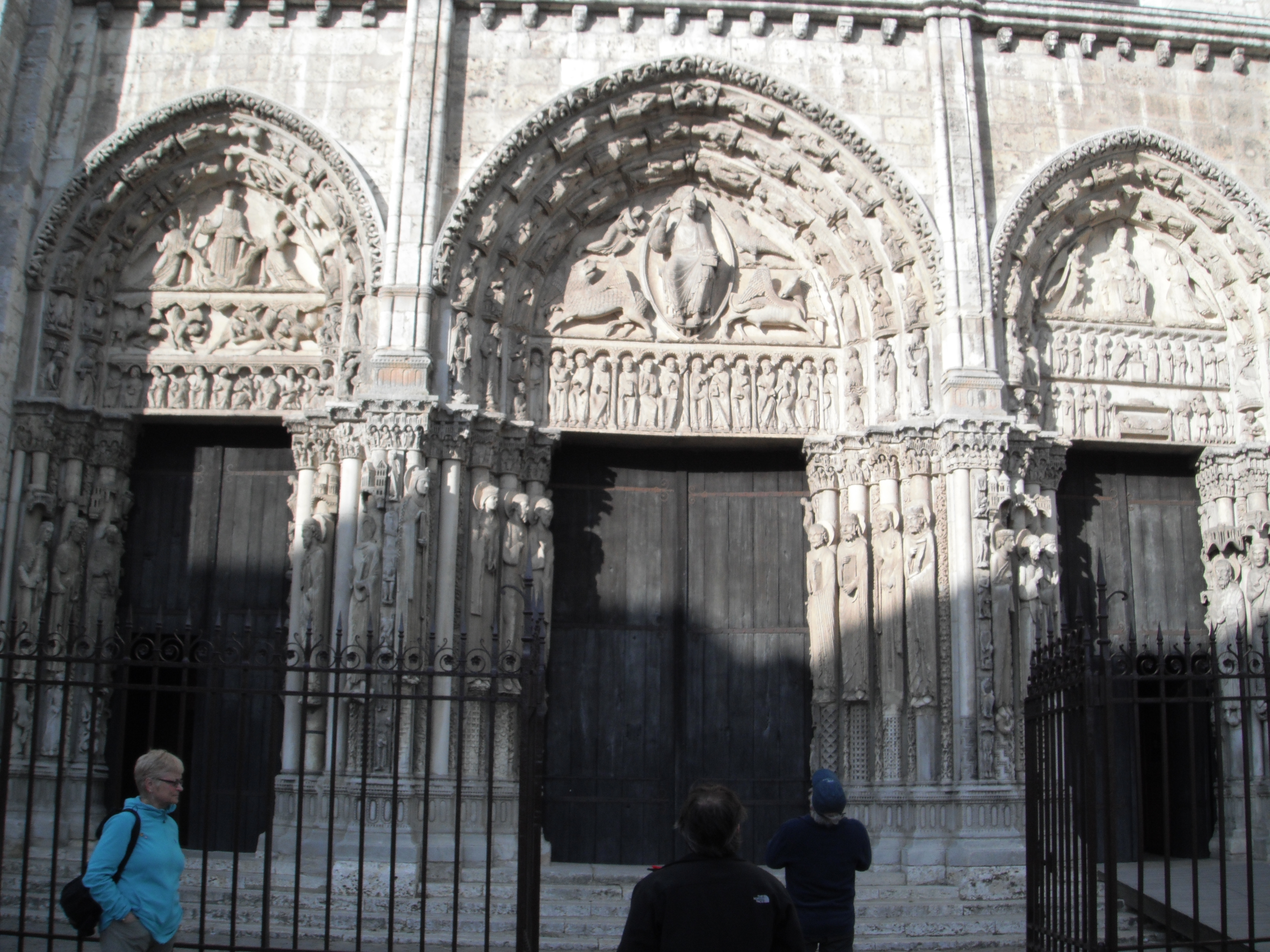 After unpacking and uncorking the cider and Calvados in our room (an experience that left us a little shaken), the four of us proceeded to take a walk around the Cathedral before having dinner. In many ways, the Chartres Cathedral was similar to what we had seen in Ypres and Bayeux – in that their designs were a combination of Romanesque and Gothic architecture. This is owing to their immense longevity and the fact that they’ve been renovated and had additions put on over the centuries.