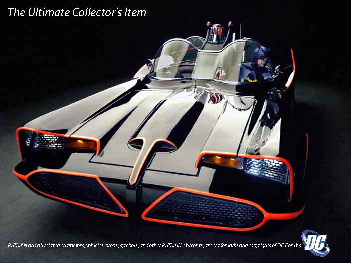 By the time of the original series, the Batmobile was based around the chassis of a Lincoln Futura and featured fully-functioning gadgets. These included a gas turbine, a Cable Cutter Blade, the Bat Ray Projector, a Batscope, Bat Eye Switch, Antenna Activator, Police Band Cut-In Switch, Automatic Tire Inflation Device, the Remote Batcomputer, the Batphone, Emergency Bat Turn Lever, Anti-Fire Activator, Bat Smoke, Bat Photoscope, and two rear-mounted ten-foot Deist parachutes.
