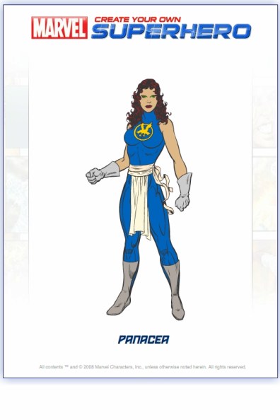 Backstory: Phyllis was on vacation in India when a terrorist attack blew up a nearby chemical factory. She wasn’t close enough to be killed, but was exposed to the chemical traces picked up by the winds as she fled. She leapt over obstacles, climbed up walls, and ran across rooftops. It first, she thought her abilities came from years of yoga and marathon races, but as she ran faster, she noticed that she could even fly. After everything had settled, she returned to see the horror of the wounded and dying and became furious. But instead of retaliating against those who committed such acts of terror, she decided to undo their hate by healing the wounded and loving them back to health.