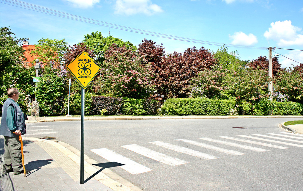He says he wants his signs to not just depict that momentum and progress, but to reflect the potentially disturbing aspects of those advances as well. Beyond that, Barbella sees an interesting dynamic in the public’s push and pull against what new technology allows us to do. Though the technology grants people access to information and other cultures, it also poses issues of privacy and ethics that hold that back. As a result, privacy concerns are thus featured in the collection in a number of ways.