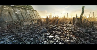 In truth, Coruscant was not so much a single city as thousands upon thousands of interconnected arcologies that ran across its surface. These various mega structures measured roughly a kilometer in height, dwarfing even the nearby mountain chains, and housed hundreds of thousands of residents each. In addition, the need to feed and provide for the staggering number of inhabitants required that every structure come equipped with a massive network for recycling water, waste and food.
