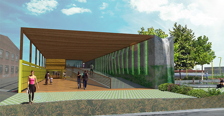 Water not absorbed by the plants would be carried to a series of water treatment technologies, using everything from algae to UV light to a bed full of reeds that will help trap solids. Ultimately, the water would not be clean to the point of drinkability, but would be safe as anything found in a pond. And in addition to drawing attention to the state of the river, the purpose, according to Shah, would also be to “showcase of different methods of water treatment.”