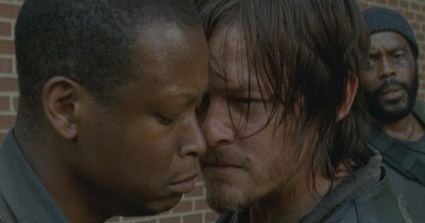 While Rick and the Governor parlay, Daryl talks to Sasha and Tyreese about getting their people onto a bus and out the back, quietly brings out their weapon’s stash and starts discreetly arming their people. Down at the fence, Walkers begin to converge, and the Governor tells him that the longer they wait, the harder it will be for Rick and his people to get out safely.